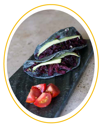 3.Calienta tortillas y agrega los frijoles y la mezcla de jamaica
