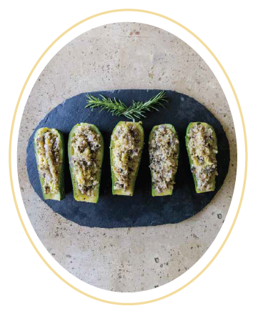 1. En una olla cuece las calabazas, por unos 10 minutos para que no queden muy aguadas, una vez cocidas, parte en dos de forma horizontal y saca el relleno con una cuchara (reserva el relleno, lo vamos a usar).