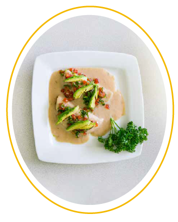 2. En un sartén sofríe la cebolla y la espinacas, rellena las tortillas con las espinacas, baña con frijoles calientitos y decora con pico de gallo y aguacate