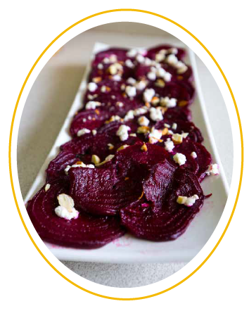2. En un platón coloca una capa de betabel rebanado y sirve unas rebanadas de queso de cabra